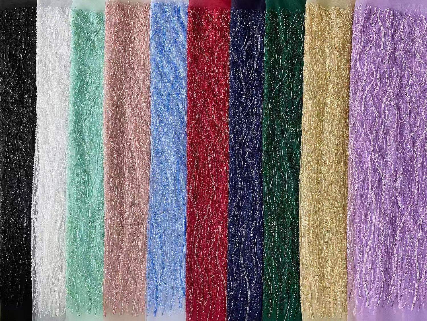 New Mesh Embroidery Bead Tube Embroidery African Fabrican Lace قاعدة الشبكة المبتكرة جنبًا إلى جنب مع تطريز الأنبوب الملبد ثلاثية الأبعاد بنكهة عرقية أفريقية قوية. مناسبة للأزياء الراقية والأزياء المسرحية والملابس الثقافية والإبداعية ، فإنه يدعم الأنماط المخصصة ومجموعات الألوان ، مع تسليط الضوء على الملمس الفاخر والغريب.