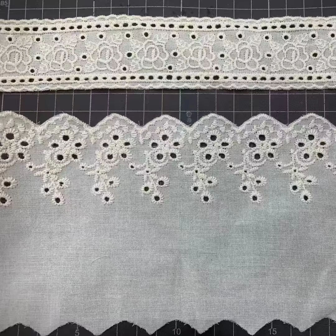 T/C Cotton Lace Transming Embroidery Cotton Lace Trim Trim T/C Eyelet Crallming مصنوعة من مادة مزيج من البوليستر-كوتون (T/C) ، وهي ناعمة وتنفس ، حيث تجمع بين متانة البوليستر مع راحة القطن. يشتمل التصميم على مجموعة متنوعة من الأنماط مثل الدانتيل المطرز ، وقطع الأزهار والدانتيل الشبكي ، ومناسبة للتجزئة الرائعة والرقوع في الملابس والديكور المنزلي. إنه يوفر مجموعة متنوعة من خيارات العرض والألوان ، ويدعم التخصيص ، ويأخذ في الاعتبار كل من الجماليات والتطبيق العملي.